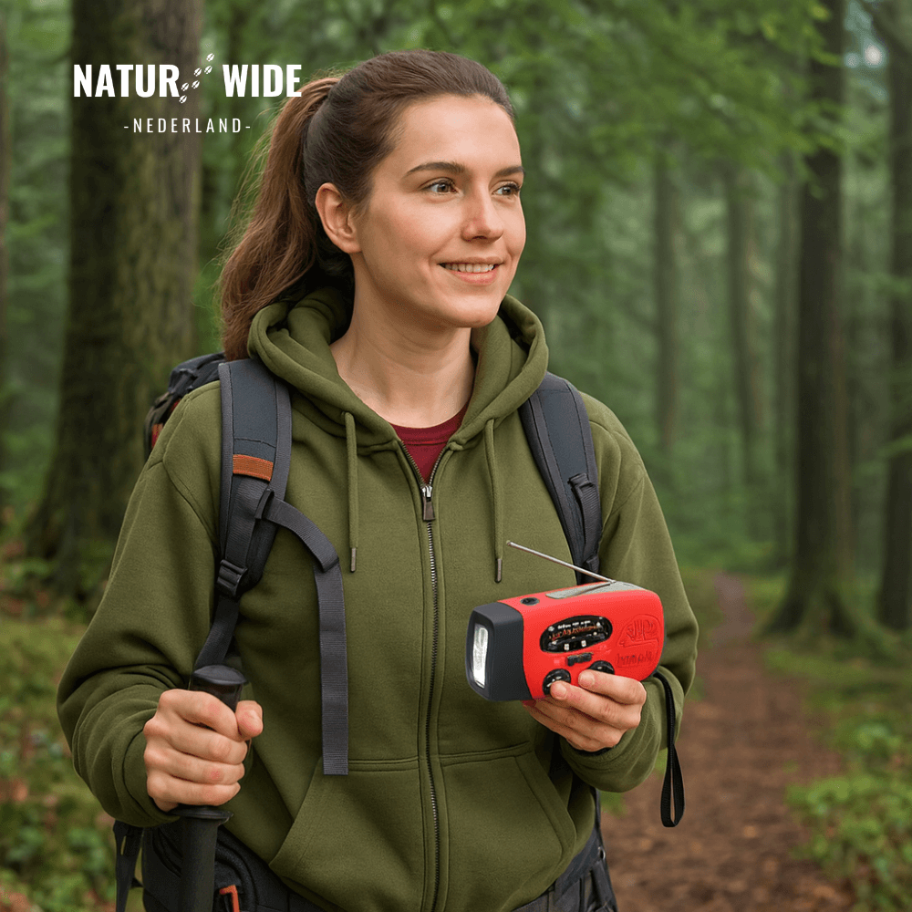 Wat deze radio zo onmisbaar maakt, zijn de extreem veelzijdige oplaadmogelijkheden. U bent nooit meer afhankelijk van een stopcontact. Laad de ingebouwde batterij overdag op via het efficiënte zonnepaneel, gebruik de soepele handzwengel wanneer het donker is, of laad hem vooraf thuis op via USB. Zo heeft u altijd de mogelijkheid om uw telefoon op te laden wanneer u die het hardst nodig heeft.