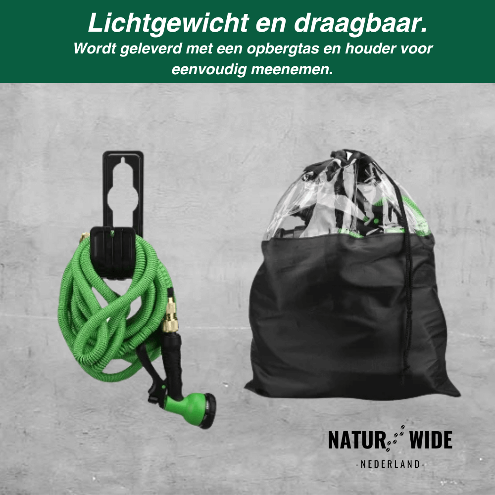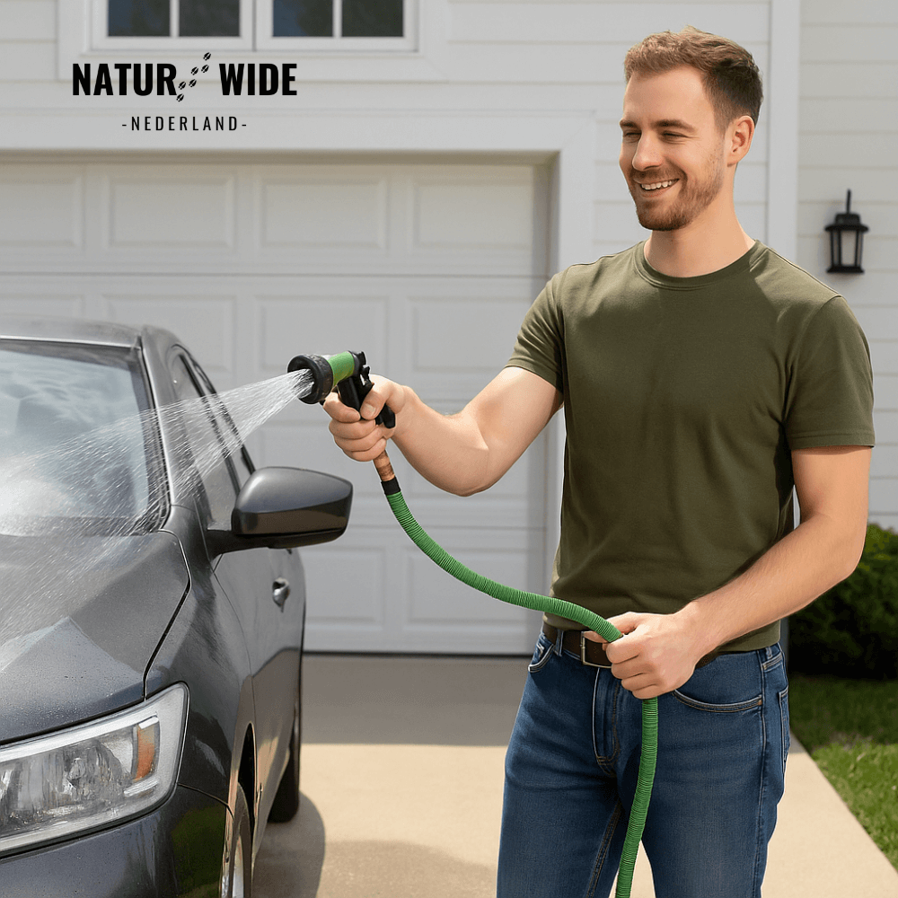 De AquaFlex Pro is ontworpen voor duurzaamheid en gebruiksgemak. Het speciale materiaal is slijtvast en garandeert dat de slang 100% knikvrij blijft, wat zorgt voor een constante waterstroom zonder frustraties. Hij is zo licht en handzaam dat u hem gemakkelijk door de hele tuin manoeuvreert, zonder dat u moe wordt van het trekken aan een zware slang.