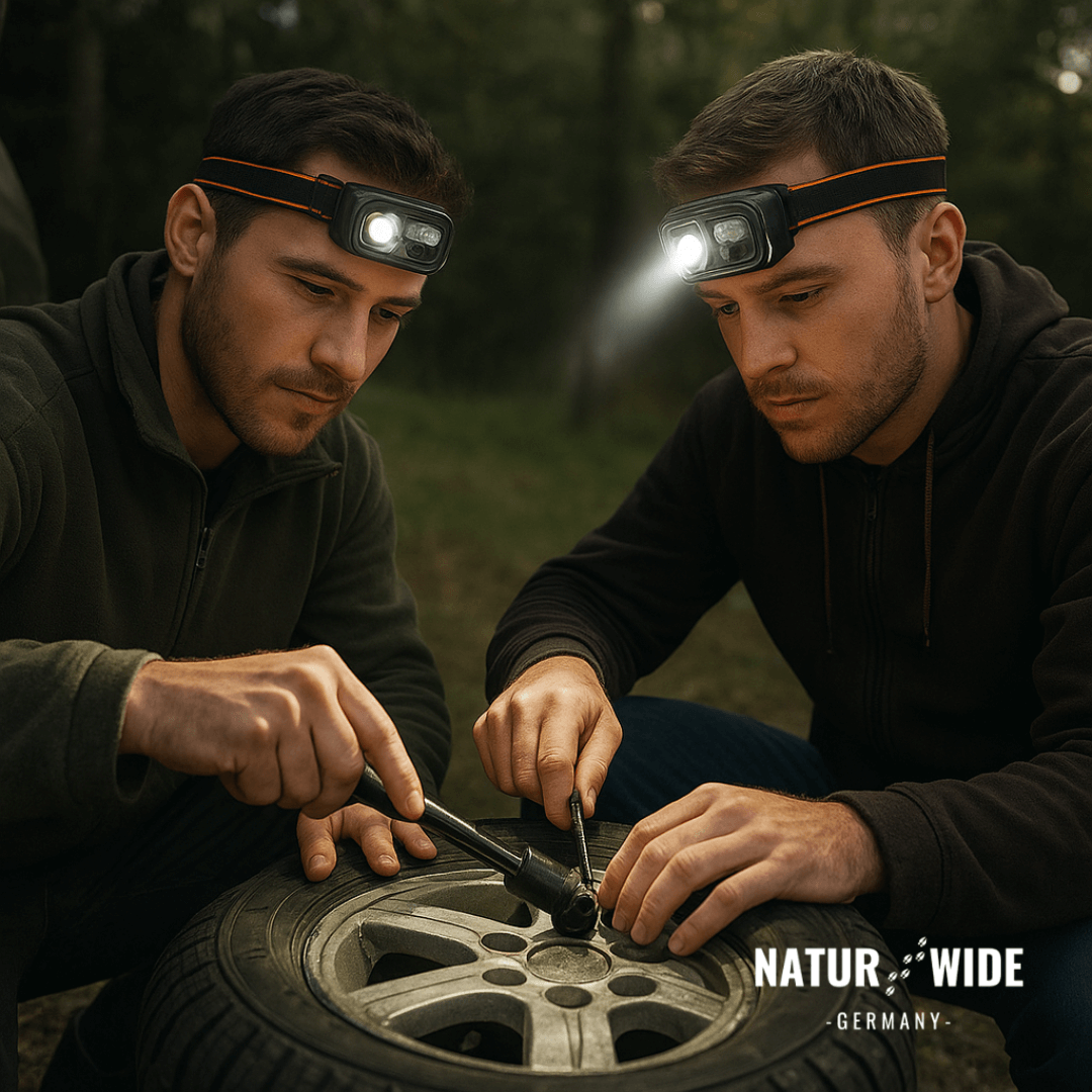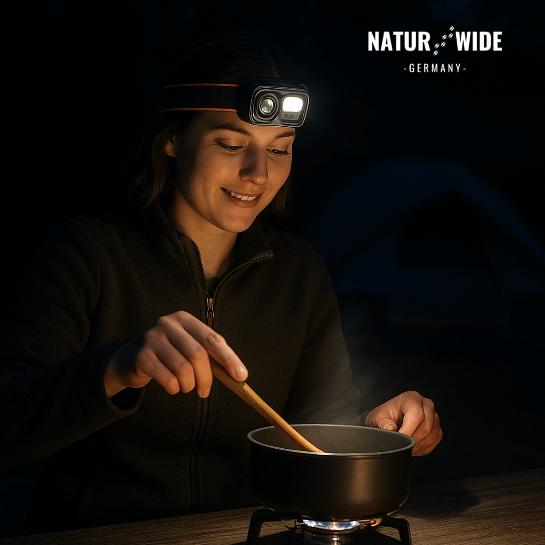 Die Extreme Stirnlampe ist dein zuverlässiger Begleiter für Camping, Nachtläufe, Angeln, Wanderungen oder handwerkliche Arbeiten.