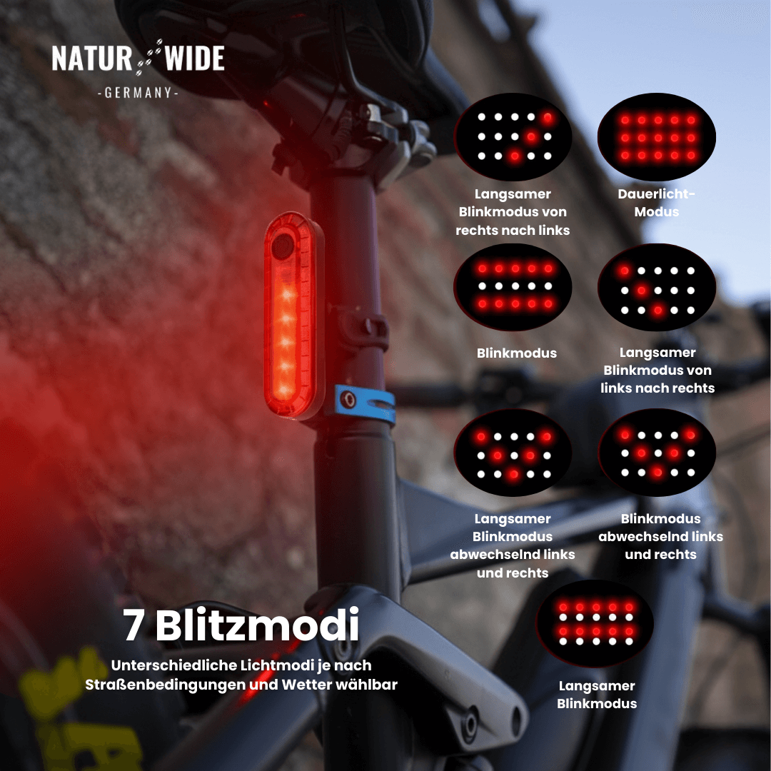 Dank USB-C Ladeanschluss vorne und USB Ladeanschluss hinten ist das Set besonders praktisch, die Akkus halten lange durch und sind jederzeit einfach aufladbar. Beide Lichter lassen sich in Sekunden werkzeuglos montieren und abnehmen – ideal für Alltag & Abenteuer.