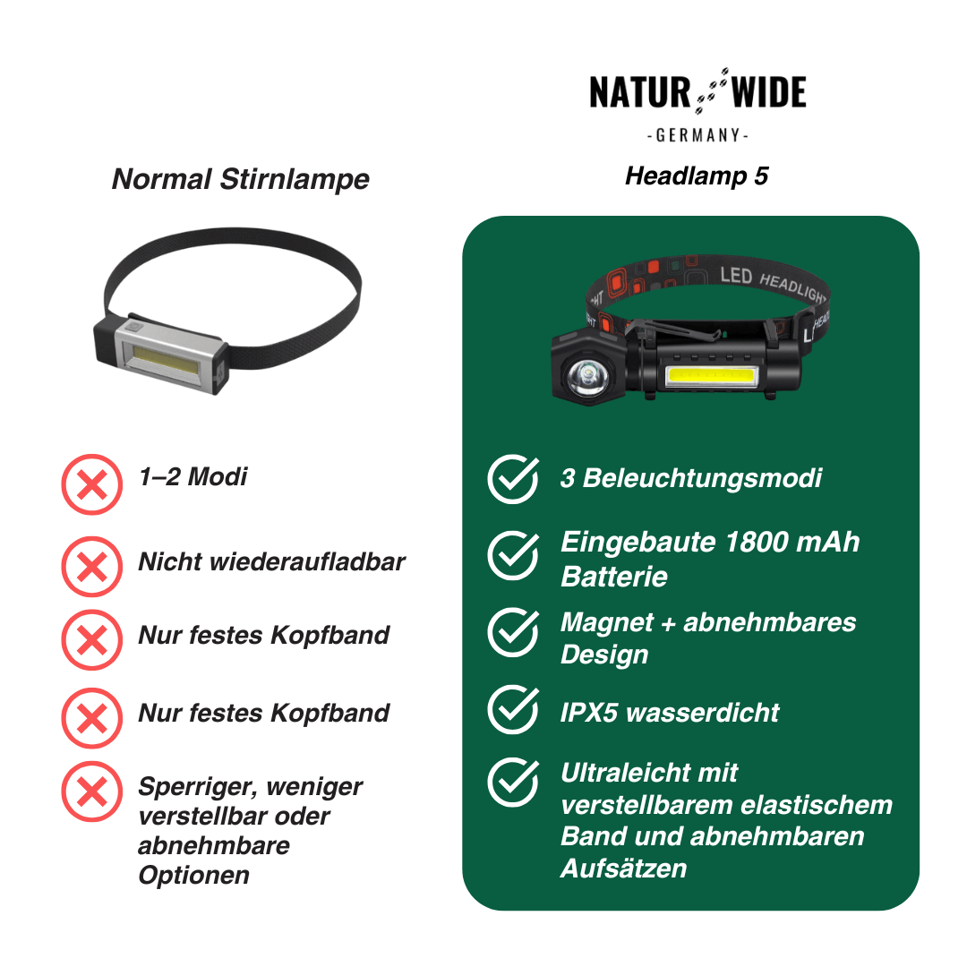 Die Multifunktionale 2-in-1 LED Taschenlampe & Stirnlampe ist dein zuverlässiger Begleiter – egal ob beim Camping, Angeln, Wandern, Radfahren oder Arbeiten in der Werkstatt.