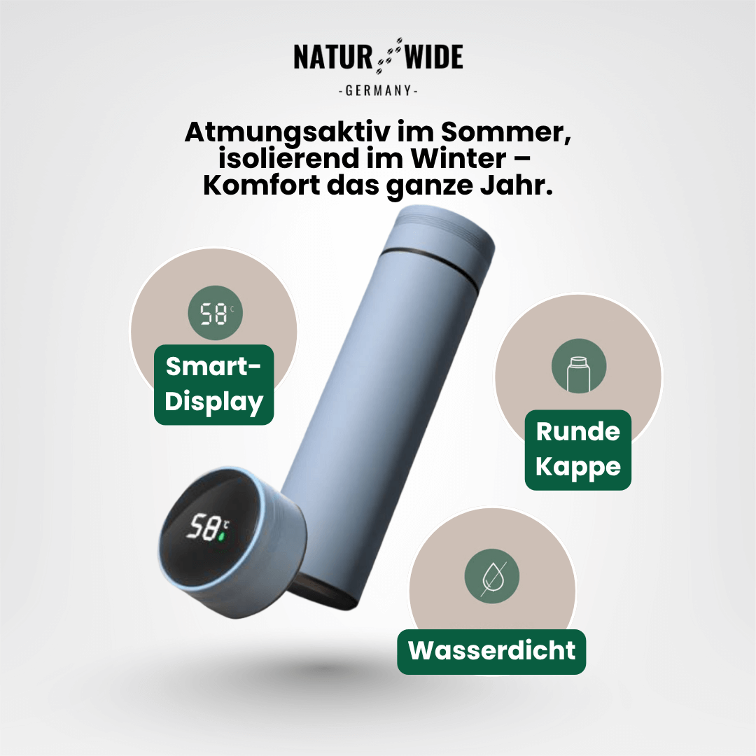 Der Naturwide Edelstahl-Thermobecher mit Temperaturanzeige vereint Stil, Funktion und Langlebigkeit.
