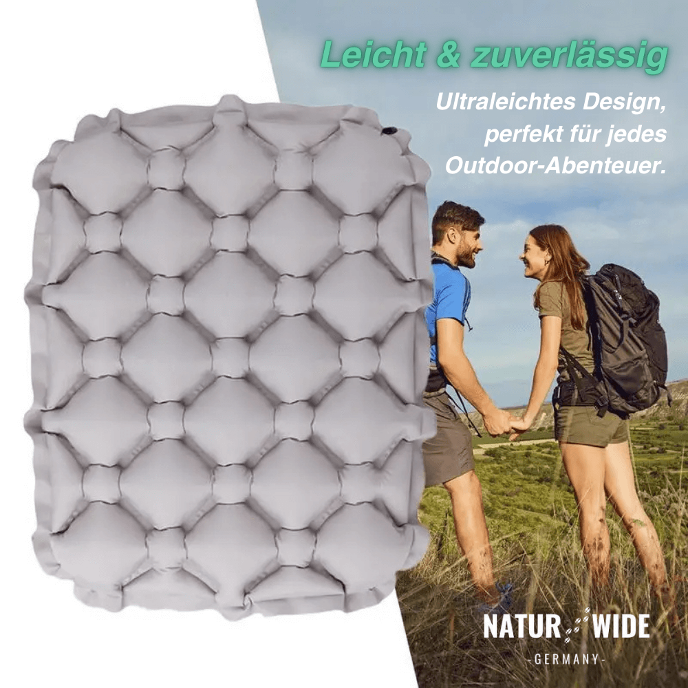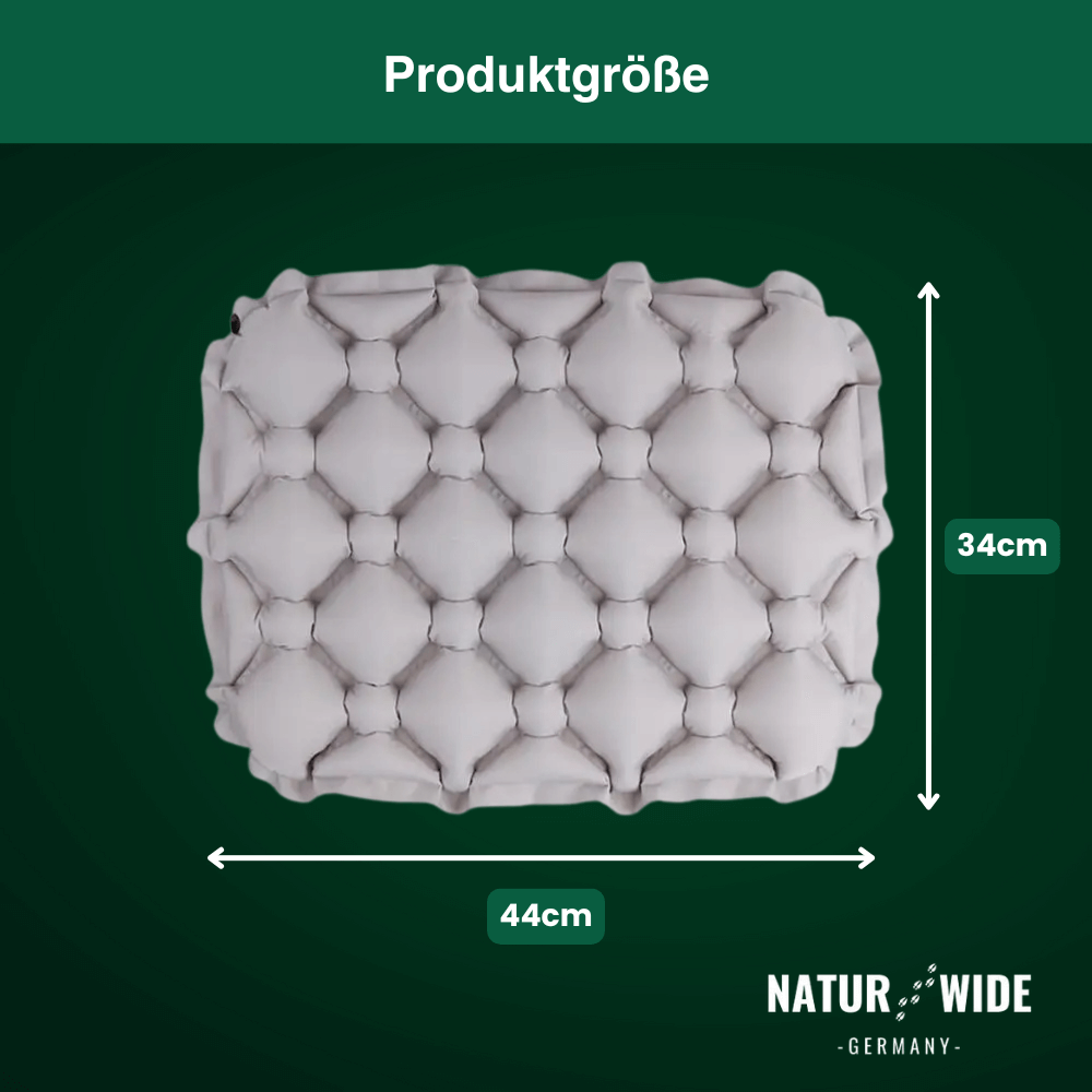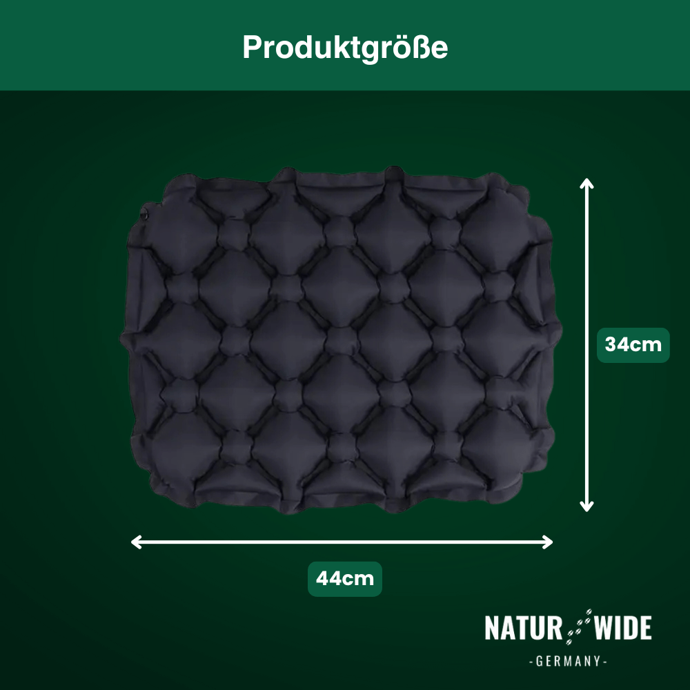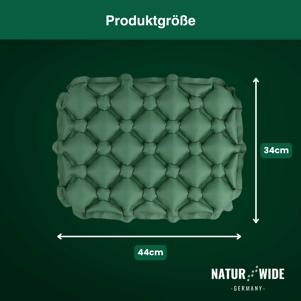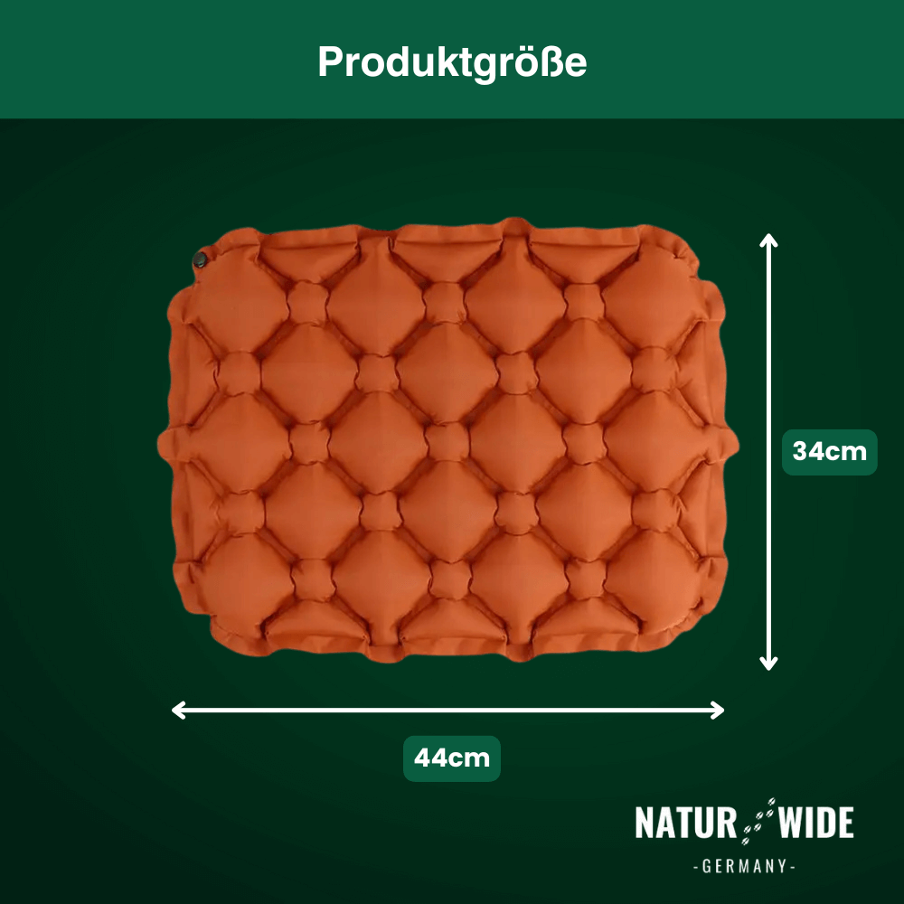 Durch das kompakte Packmaß und das geringe Gewicht lässt sich das Kissen überallhin mitnehmen – im Rucksack, in der Jackentasche oder im Auto. Einfach aufblasen, entspannen und den Moment genießen.