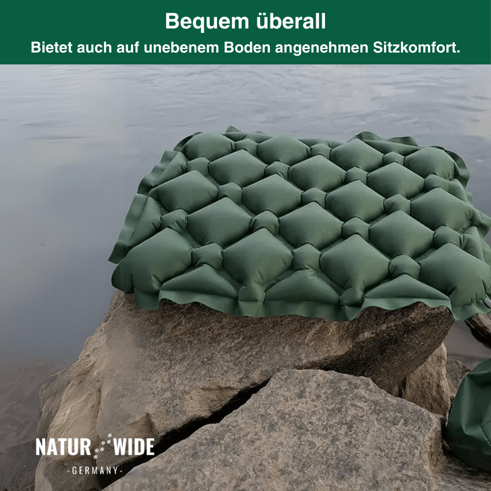 Es besteht aus strapazierfähigem TPU & Nylon, ist wasserabweisend und schützt zuverlässig vor kaltem oder feuchtem Untergrund. Die ergonomische Konstruktion reduziert den Druck auf deinen Körper und verhindert Sitzermüdung bei längeren Pausen.